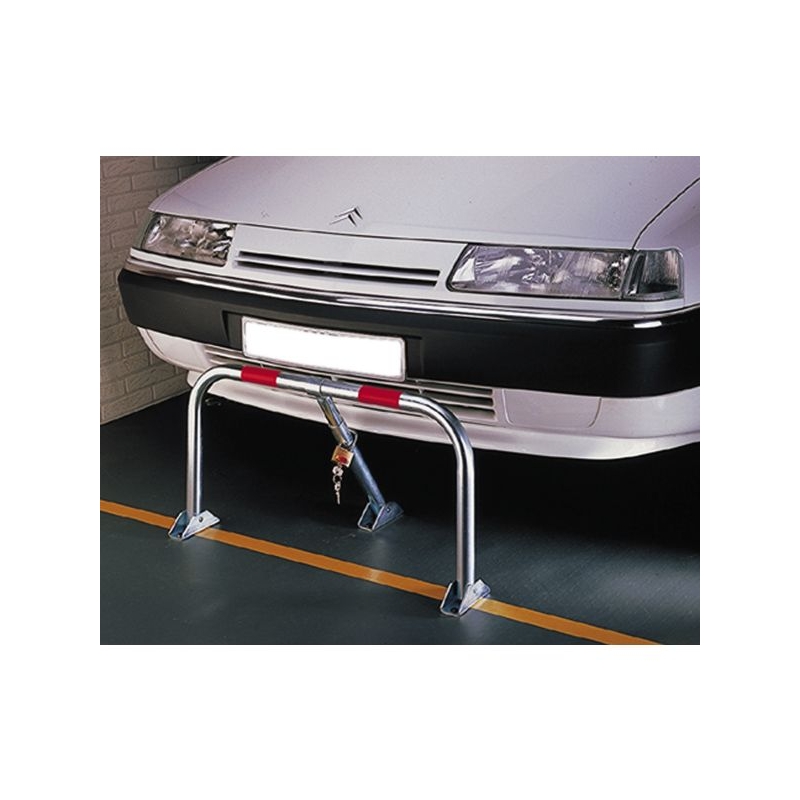 Protection permanente de stationnement. Tube Ø 35 mm, traité antirouille, livré avec 2 bandes rouges de repérage. Verrouillage simple et efficace par cadenas (inclus). Embases tôle, vis et chevilles (fournies). L x H x P : 75,5 x 40 x 36 cm Poids : 5,600 kg