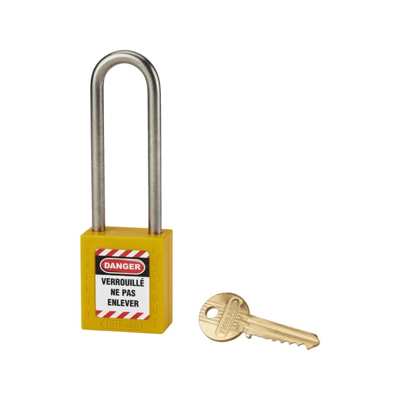 Corps ABS non conducteur avec anse en acier inoxydable. Double ancrage. Livré avec 1 clé. Fonction clé prisonnière. Corps (L x H) : 38 x 44 mm Conditionnement : boite