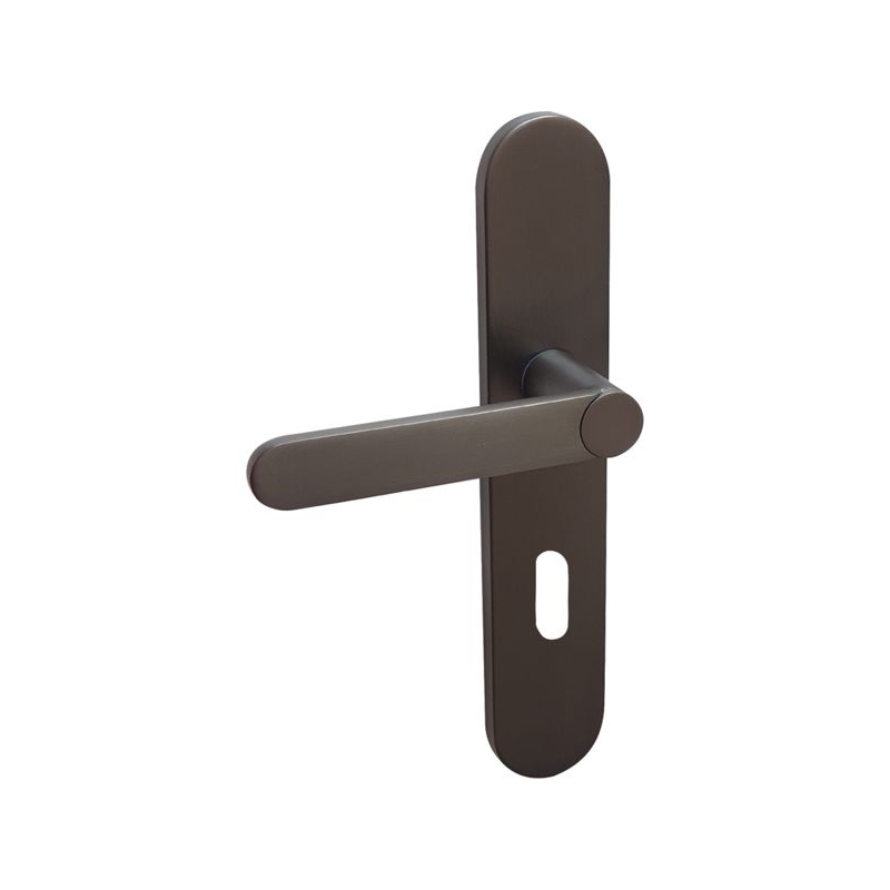 Pour porte intérieure d'épaisseur 38 à 50 mm. Système Easy K breveté made in France, fixation sans perçage, sans vis apparente, adaptable quelque soit l'entraxe 165 ou 195mm. Plaque : 220 x 42 mm Entraxe de serrure : 70 mm Longueur béquille : 114 mm Saillie de la béquille : 47 mm Fouillot carré : 7 mm Matière : Aluminium Conditionnement : boîte 100% recyclable.
