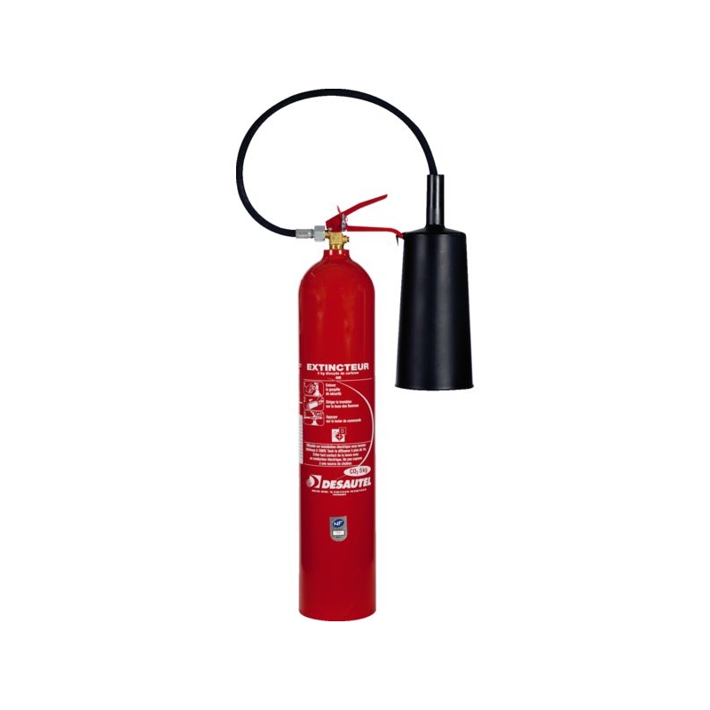 Le CO₂ est l'agent extincteur le mieux adapté aux feux en présence d'un conducteur sous tension : transformateurs, tableaux électriques, ordinateurs, moteurs, cuisines, laboratoires... Adapté aux feux de classe B avec présence de courant électrique. Gaz incombustible et incomburant, il étouffe le feu et souffle la flamme. La neige carbonique formée par la brusque détente de CO₂ est à -78°C évitant les risques de réinflammation. Extincteur à pression permanente. Gaz propulseur : CO₂ Norme : NF-EN 3.7 Livré avec support mural.