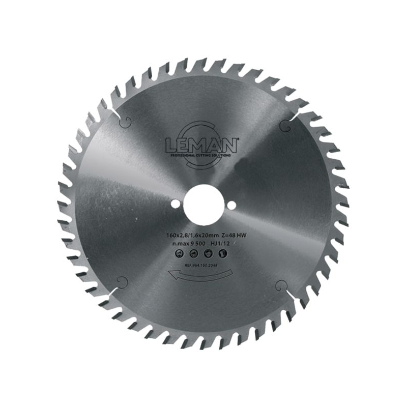 Lame de scie carbure, denture alternée pour le travail du bois. Corps en acier traité et rectifié, tensionné.