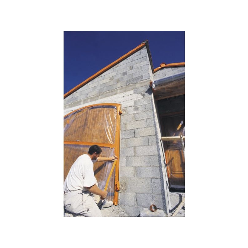 Utilisation intérieure et extérieure. PVC multi-usage: protection pour les projections d'enduit en façade, jointage de panneaux d'isolation et réparations diverses. Souple, conformable et déchirable à la main. Adhère sur supports poussiéreux ou humides. Longueur : 33 m