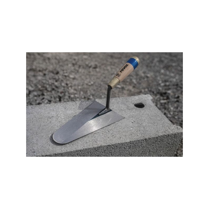 Pour maçonner, cimenter et crépir. Manche en frêne. Lame souple en acier trempé. Patte forgée. Virole et culot laitonnés.